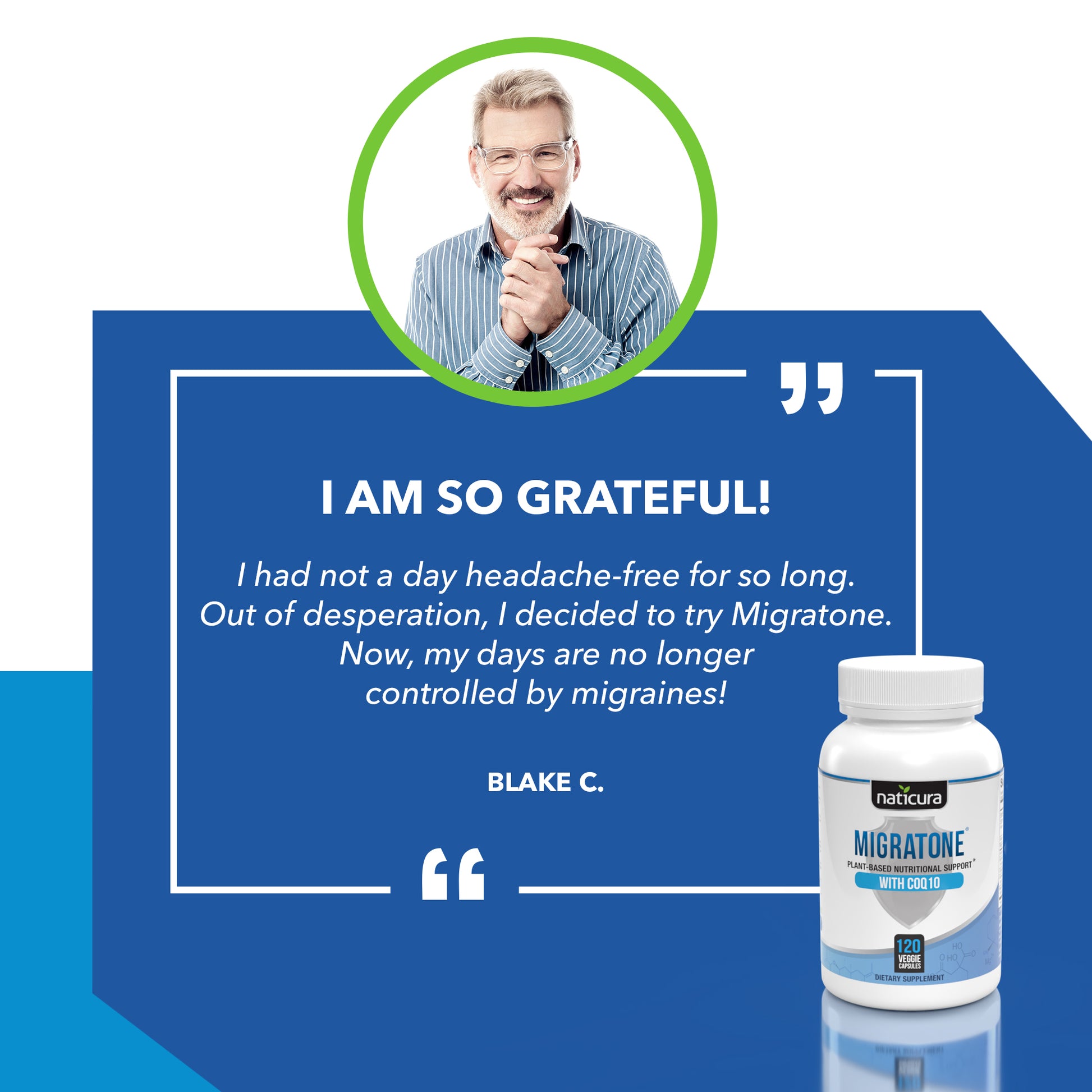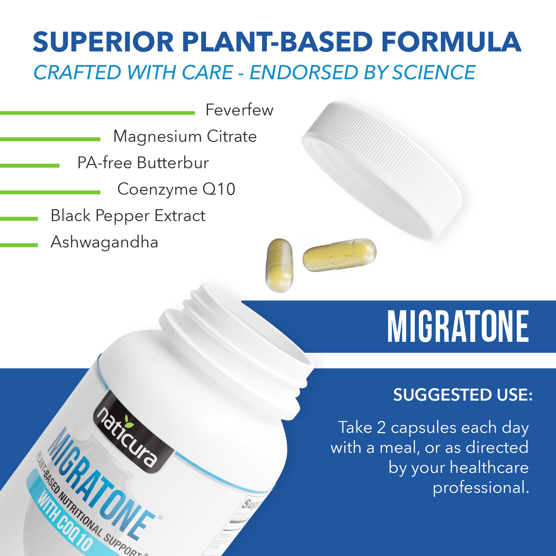 Migratone Migraine Defense Natural Headache Relief Supplement - Helps to Prevent Nausea, Sensitivity & Auras from Tension & Chronic Strain - Doctor Recommended Long-Term Protection & Brain Support - 120 Vegan Capsules