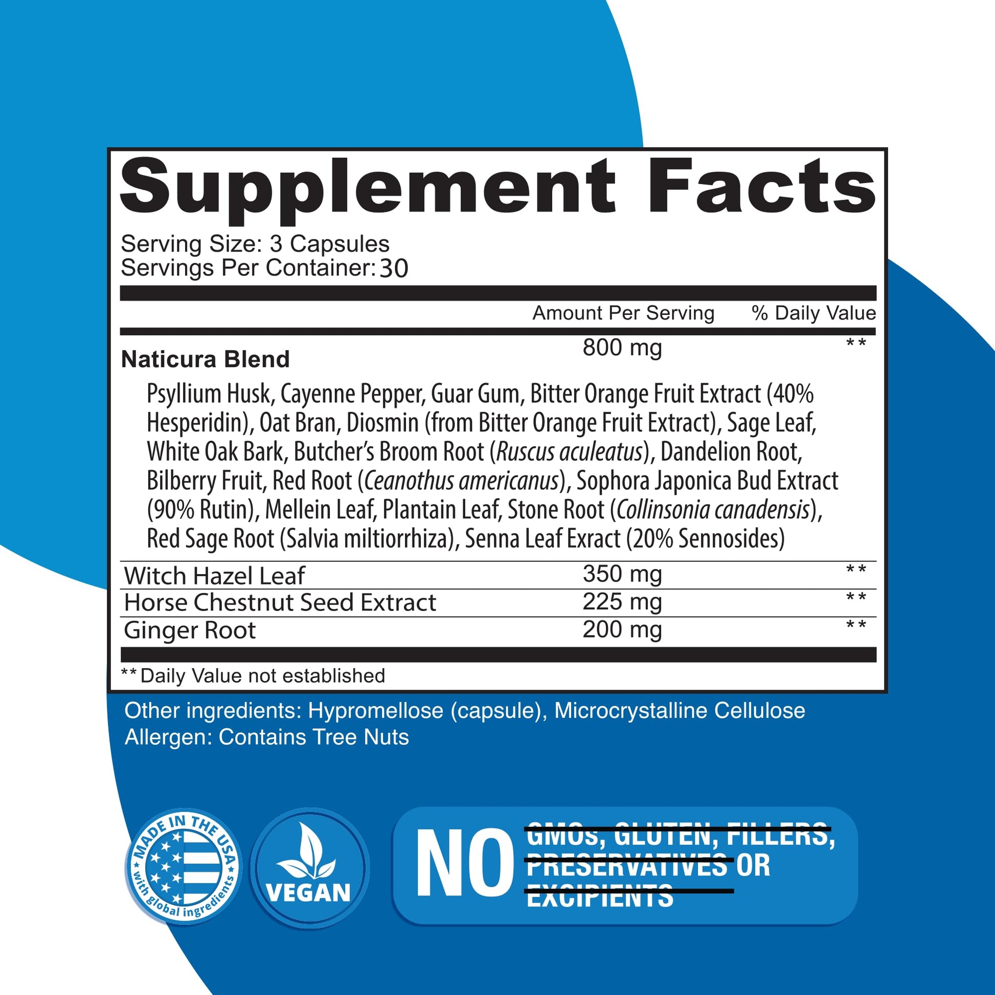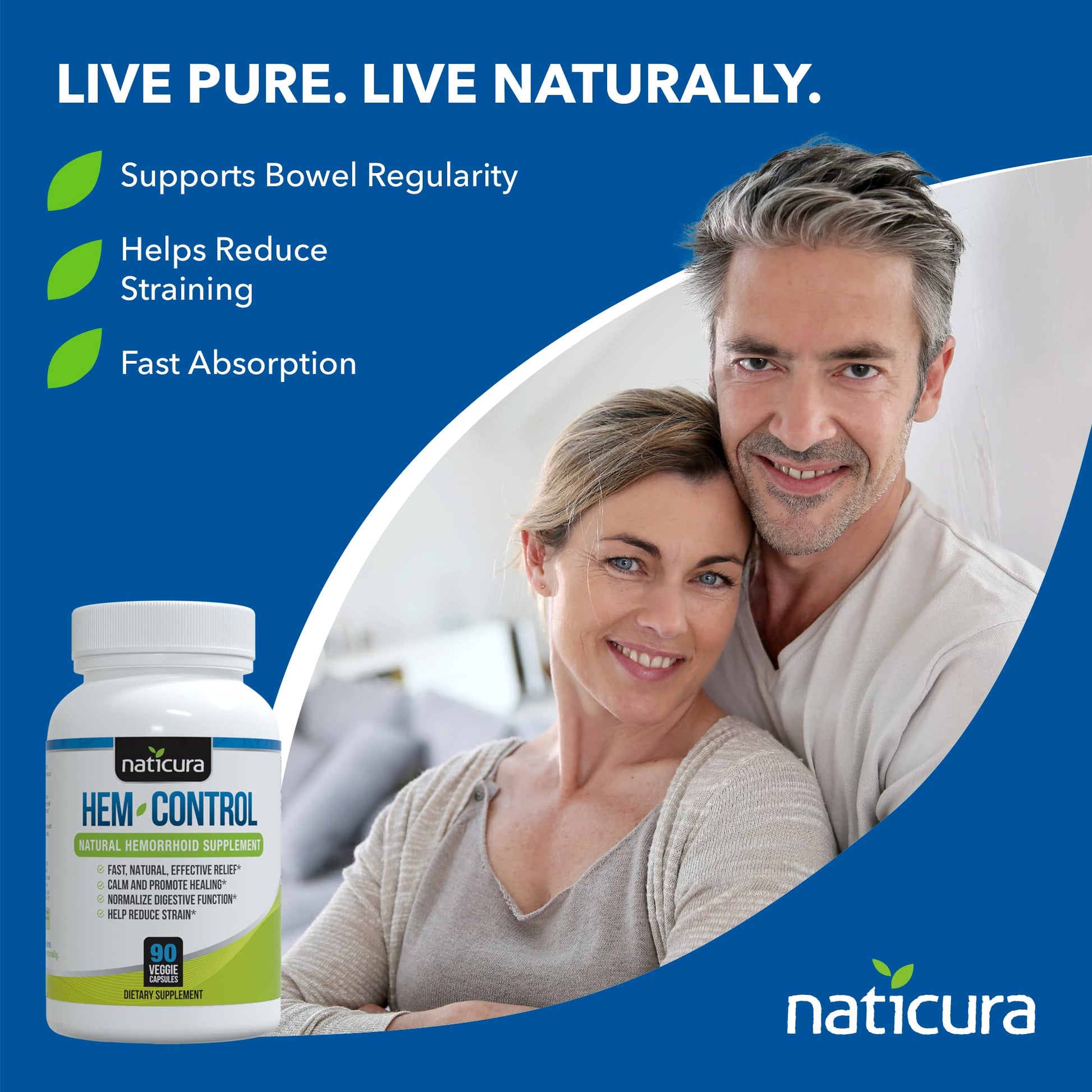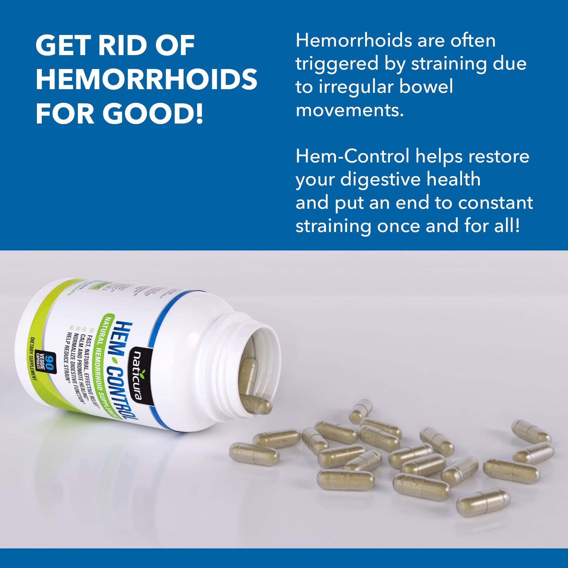 Naticura Hem-Control - Fast Effective Hemorrhoid Treatment Supplement - Powerful Formula to Promote Symptom Relief, Shrinking of Hemorrhoids, Ease Discomfort - 90 Vegan Capsules - Made in USA